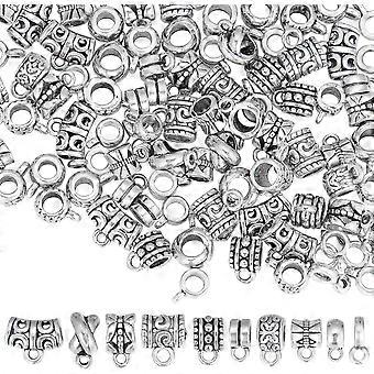 1 Box 100Pcs Bails Beads Bulk Clasp Bail Bead Charms Connector Tibetan Style Tube Bails Hanger European Alloy Loop Loose Spacer Large Hole Beads for J