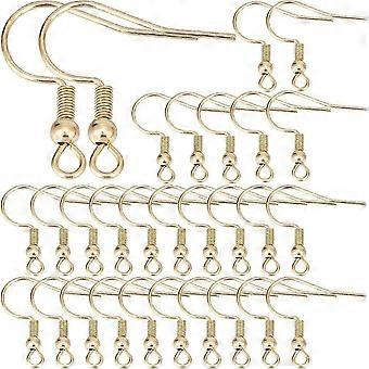 1 Box 150Pcs Real 18K Gold Plated Earring Hooks French Earring Hooks Bulk Fish Hook Earwires with Coil Ball Ear Wire Earrings Finding for Jewelry Maki