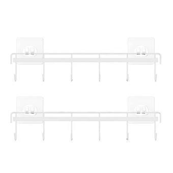 1 Set Kitchen Utensil Holder No Drilling Required Self Adhesive Good Load-bearing Electroplating Kitchen Utensil Rack with 6 Storage Hooks Kitchen Sup