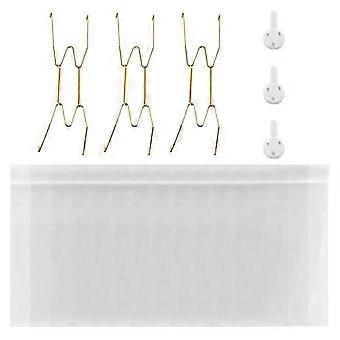 1 Set Metal Plate Spring Hanger with Wall Mount Hook Clear Protector Invisible W-shape Adjustable Round Rectangle Square Ceramic Decorative