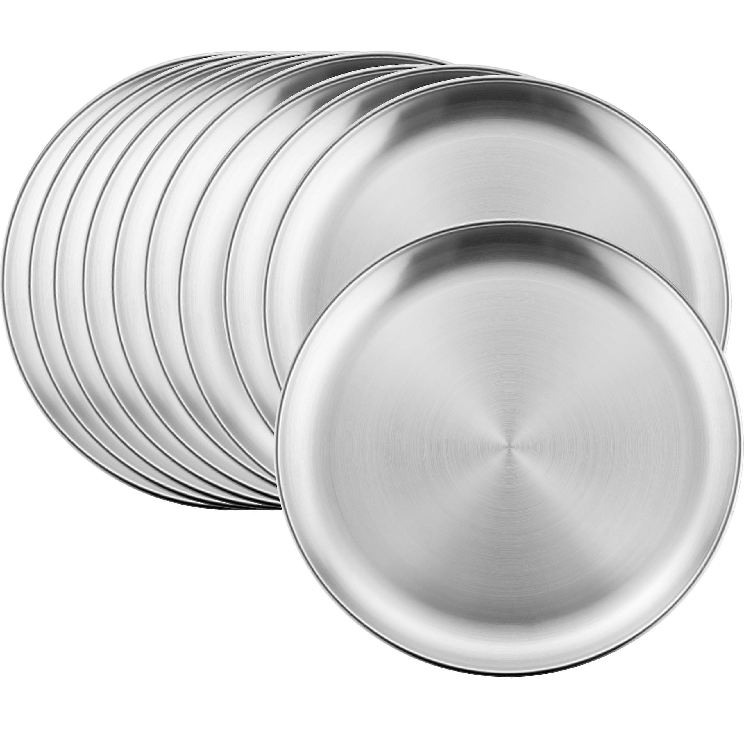 10 Pieces Stainless Steel Plates for Feeding Serving 10 Inches