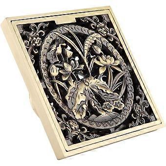 10 * 10cm,Koi Fish PatternBrass Bathroom Floor Drain - Antique Single Square Flower Carved Shower Drain for Toilet Garden