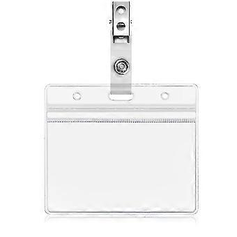 10 Pcs Plastic Badge Holders Name Tag Clear Badge Id Card Holders And Crocodile Style Metal Badge Clips With Waterproof
