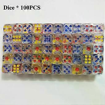 100 Pieces Colored Dices 14mm 6 Sided with Acrylic Material Standard Game Dice Set for Board Games Parties Classroom Math Dice