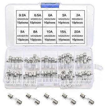 100 Pieces Fine Fuse Glass Fuse Glass Tube Fuses 0.2a-20a Amp Assorted Kit With Storage Box 5 X 20mm Assortment Box