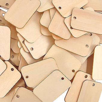 100 Pieces Wooden Rectangle Craft Shape Tag Wooden Embellishment Tag With Hole