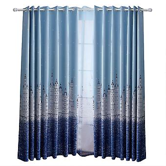 100*250cm Modern Beautiful Pattern Polyester Bedroom Living Room Lightproof Curtain (Blue)