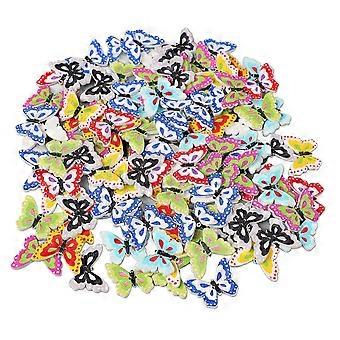 100pcs Mixed Printing Butterfly Wooden Buttons - 1 Inch Decorative Buttons for Sewing DIY Craft