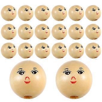 100Pcs Round Wood Beads For DIY Craft With Laughing Face Design Suitable For Children And Parents Multi Color Wooden Bead Accessory