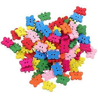 100pcs Wooden Butterfly Buttons for DIY Craft Sewing Projects