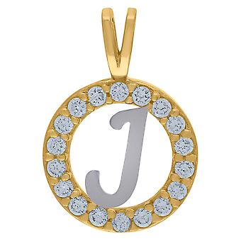 10k Two tone Gold Unisex Cubic Zirconia Letter Name Personalized Monogram Initial J Round Charm Pendant Necklace 17.7x12