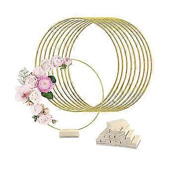 10Pcs 12In Metal Floral Hoop Centerpiece with Stand for Table,Macrame Gold Wreath Ring Centerpiece