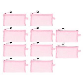 10Pcs Nylon Mesh Pencil Pouch with Zipper Waterproof Tear Resistant A6 Paper Document File Folders Pouch Organizer Bags Pink