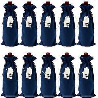 10pcs Universal Wine Bags Imitation Linen Protectors Widely Applied Bottle Wraps for Party Blue