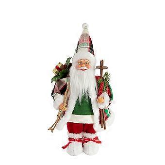 12 Inch Santa Claus Christmas Toy with Red Beard and Bell in Red Green Outfit