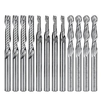 12 Pcs Carbide End Mill Cutter 1/8" Cnc Router Bits Double Flute Tools 1 Flute Single Edged Milling Cutter