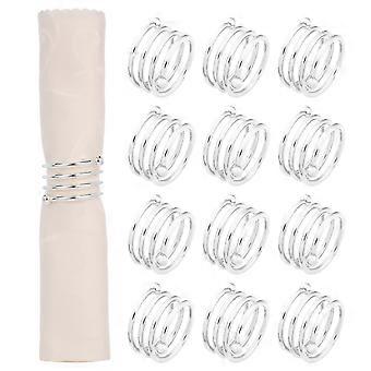12 pcs Silver Napkin Rings, Metal Napkin Ring Holder Spring Design for Banquet Party