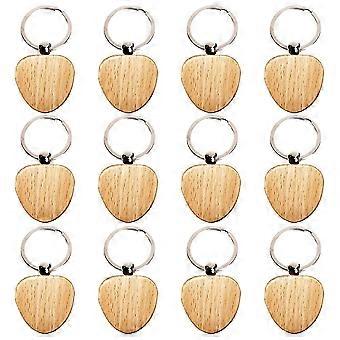 12pcs Blank Heart-shaped Wooden Key Chain Diy Wood Keychains Key Tags Diy Gifts