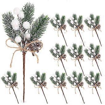 12pcs Green Simulation Pine Berry Christmas Ornaments for Home Cafe Decor and Photography Props