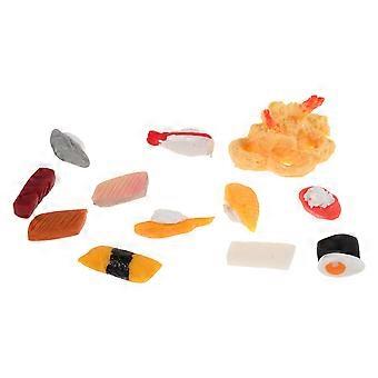 12pcs Mini Sushi Food Props for Dollhouse Realistic Japanese Miniature Food Models for Mini Display & Decoration, High Simulation Sushi Figurines