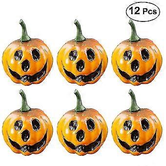 12pcs Simulation Lifelike Artificial Small Pumpkins Carved Scary Face Table Centerpiece Halloween Decoration Party Supplies Photo Props