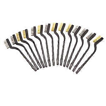14 Pack Wire Brush Set for Cleaning Welding Slag and Rust Stainless Steel and Brass Curved Handle M