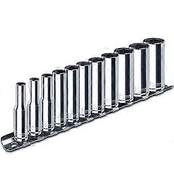 1/4inch Drive Deep Socket Set, 11PCS Metric Size Socket Set (4mm-14mm), 6-Point Design, Equipped wit
