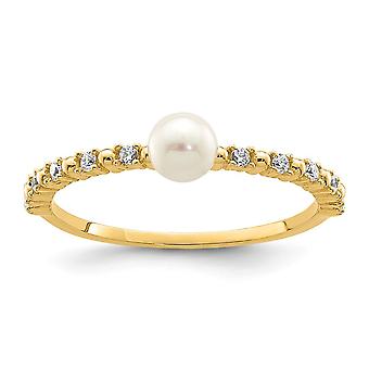 14k Solid Gold 3 4mm White Button Freshwater Cultured Pearl Cubic Zirconia Ring Size 4 Band Style-Ring for Women