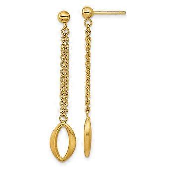 14k Solid Yellow Gold Polished and Brushed Navette Link Post Long Drop Dangle Earrings 50.5x8.8mm Wide-Dangle Earring fo