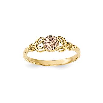 14k Textured Y R Gold Polished Rose Ring Size 7.00-Ring for Women