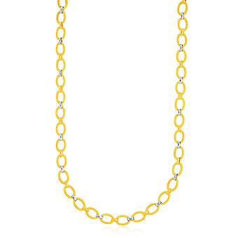 14k Two-Tone Gold Multi-Textured Oval Link Fancy Necklace