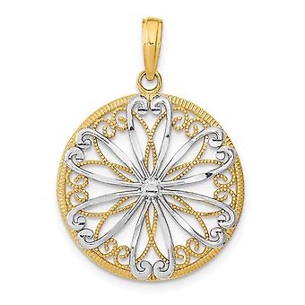 14k Two tone Gold Round Frame With Filigree Center Pendant Necklace-Two color 21.5x21.5mm Wide-Pendant for Women