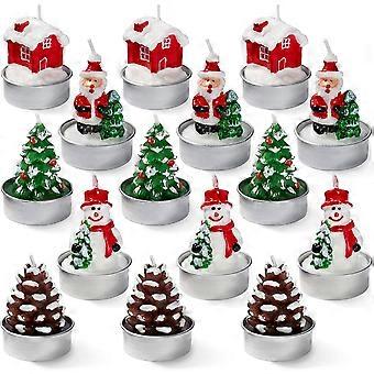 15 Pack Mini Christmas Unscented Tealights, Include Xmas Tree & Santa Shaped Candles