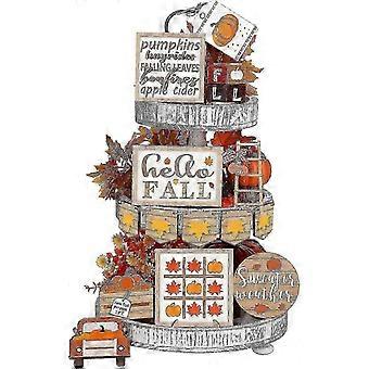 17Pcs Fall Tiered Tray Decorations Set, Thanksgiving Pumpkin Maple Tiered Tray Decorations Set, Rustic Farmhouse Pumpkin Truck Spice Blocks Autumn Woo