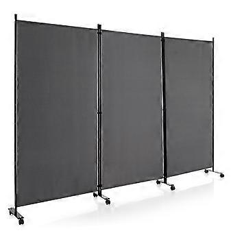 180 cm high room divider on wheels, folding screen with 3 freely combinable panels, grey