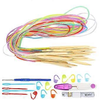 18Pcs Circular Double Pointed Bamboo Color Needlework Tools with Accessories Pack (120cm)