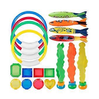 19 Piece Underwater Diving Pool Toy Kit, Diving Torpedo Bandit, Diving Ring
