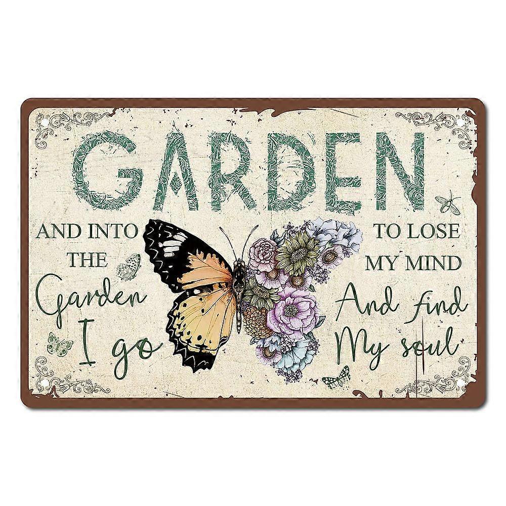 1pc Butterfly Garden Metal Tin Sign Birthday Gardener Gifts Christmas House Warming Gift Retro Vintage Wall Art Mural Hanging Iron Painting for Garden