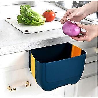 1pc- 3 L (Blue Yellow) Mini Hanging Foldable Trash Can for Kitchen Cabinet Door, Small Collapsible Trash Can Under Sink, Wall Mounted Foldable Trash C