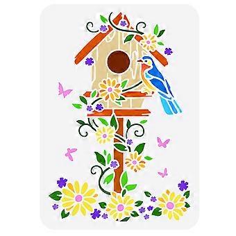 1pc Bird House Stencil 11.7x8.3 inch Flowers Butterfly Stencils Plastic Bird Daisy Leaves Pattern Template Reusable DIY Art and Craft Birdhouse Stenci