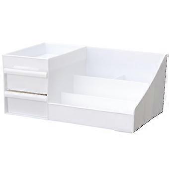 1pc Desktop Organizer Storage Case Make-up Organizer With 2 Drawer For Bedroom Vanity Table Dormitory (white)