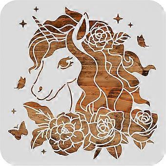 1pc Fantasy Unicorn Theme Plastic Stencils 30x30cm Flowers Butterflies Stars Cutouts Painting Template for Painting Wood Burning Pyrography and Engrav