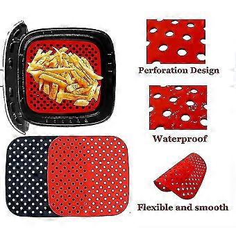 1pc Reusable Square Air Fryer Silicone Accessories Air Fryer Non-stick Durable Pad Scale Place Mat Kitchenware Black/red -aya