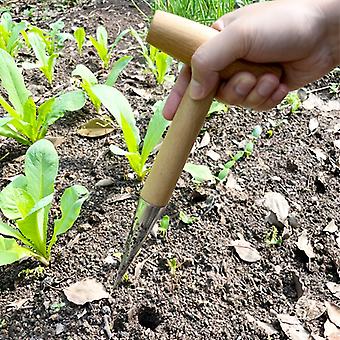 1pc Stainless Steel Sow Dibbler With Wooden Handle T-type Dibber Garden Tool Hand Held Bulb Planter For Digging Seeding Transplanting Vegetable Loose