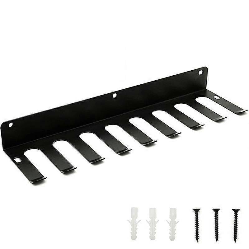 Heavy-duty: The resistance band hanger is made of heavy-duty Material, the is covered with black anti-rust powder coating to strong and beautiful. It can be used to store fitness equipment in home gyms, garages and commercial gyms. It is recommended to use a specific storage rack for Barbells of 6ft and above. Practical Design: The distance between the 9 prongs and the length of the prongs are suitable to hang many kinds of items. The upward sloping design of of the prongs can effectively prevent the hanging items from falling off. Two new carabiners have been added for hanging items that are inconvenient to place on the prongs. Application: Used to hang Resistance Bands, Barbell Bar, Lifting Belts, Dip Belts, Chains, Jump Ropes, to prevent objects from tangling and keep them clean and tidy. It can also be used to hang baseball bats, medals, small weightlifting equipment and place foam rollers, etc. Easy Installation: Super easy to install and disassemble, the product includes hardware for installation. The distance between the center of the mounting hole and the hole is 16INCH. size: About 42cm long Material: Metal colour: black Package Contents: 1 x Multi-Purpose Gym Equipment Storage Rack Only the above package content, other products are not included. Note: Light reflection and different displays may cause the color of the item in the picture a little different from the real thing. The measurement allowed error is +/- 1-3cm.