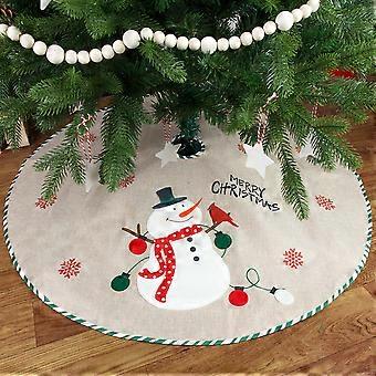 1PCS Diameter 108CM Christmas decorative linen embroidered tree skirt tree girth carpet Christmas tree apron layout decorations (style 2)