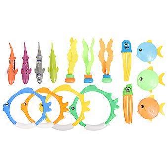 1set Diving For Pool Kit With Diving Rings Sharks Fish Seaweed Fun Swimming Training Accessories For Ages