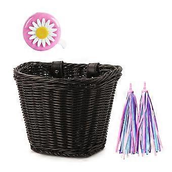 1Set Rattan Wicker Bicycle Basket Bike Handlebar Accessories Black