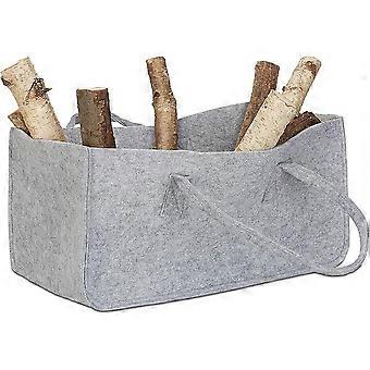1x Log basket, felt, 2 handles, foldable, magazine rack, HxWxD: 25x25x50 cm, firewood tote, grey