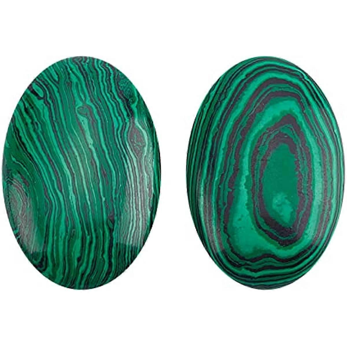 2 Pcs Green Malachite Stones 1.572.38" Chakra Thumb Worry Stone Oval Shape Polished Palm Thumb Pocket Stones for Scraping Massage Anxiety Stress Relie